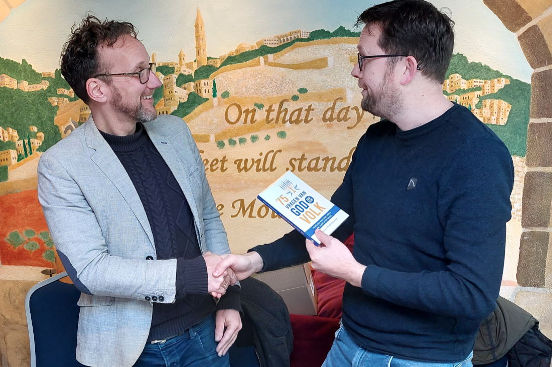 Vandaag is het eerste exemplaar van het boek ’75 vragen van God aan Zijn volk’ aan schrijver Marien overhandigd. Hij schreef het boek met het 60 jarig bestaan van de NEM en het 75 jarig bestaan van de staat Israël in het achterhoofd.