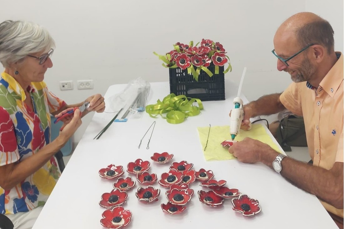 Toch heeft ze de moed opgevat om een prachtig project op te zetten: Samen met de gehandicapte bewoners heeft ze 160 bloemen van klei gemaakt. Het zijn klaprozen die allemaal verschillend zijn. Het gebied waarin haar zoon is overleden, is bedekt met velden vol wuivende klaprozen, wat een overweldigende schoonheid laat zien.