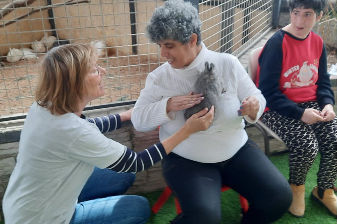 Wim: “Al even zijn we bezig om een kleine dierentuin te maken. Ze geven het de naam Animal Therapy. Ik heb de dierentuin ontdaan van ernstige daklekkage en wat opleveringspuntjes aangepakt.” Els: “Met een aantal bewoners kijken we alvast even naar de dieren. Ze zijn nieuwsgierig hoe zo’n konijntje eruitziet en hoe het voelt. Mooi als ze na enige aarzeling het diertje aaien of even vasthouden.” Wim: “Zelfs twee broers helpen de hokken schoon te vegen. Zo mooi om te zien, omdat ze verder bijna niets willen of kunnen doen door hun autisme.”