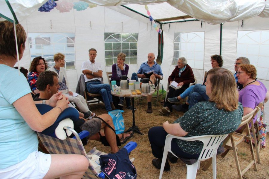 Carla Raaijmakers uit Moordrecht bezocht samen met haar man voor het eerst een Reveilweek. “Ik weet niet meer precies hoe ik bij de NEM aangekomen ben, waarschijnlijk via Otto de Bruijne, de canvas kapel* en had wel eens de term ‘Reveilweken’ gehoord. Normaal gaan we als echtpaar de hele maand juni weg maar dit jaar kwam het er niet van. Dus nu hadden we ruimte en boekten voor de Reveilverdiepingsweek. Omdat er tijdens deze week geen kinderen bij waren, leek dat voor ons een rustige kennismaking.